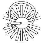 Next, glue the 8" strips to the circle (2" on the circle 6" extending beyond the circle). Glue 9 strips on each side of the circle overlapping a bit; spacing out to be even. Do the same on the other side of the circle with the other 9 strips.