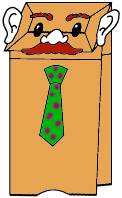 1. Click here to go to a printer friendly page with puppet parts wich you can print out and color the pieces. 2. Cut them out and tape or glue them on to a lunch bag. Be creative, add your own ideas.