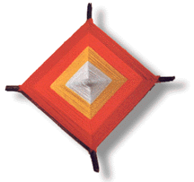 To change color of yarn, give an extra wrap of yarn to the stick where you want to change colors and tie the new color to the old securely, making sure knot is in back of design, not front. Change colors as often as you wish or not at all. Multicolor yarns make interesting designs too. To finish off design, double knot yarn to stick you want to end at and trim.